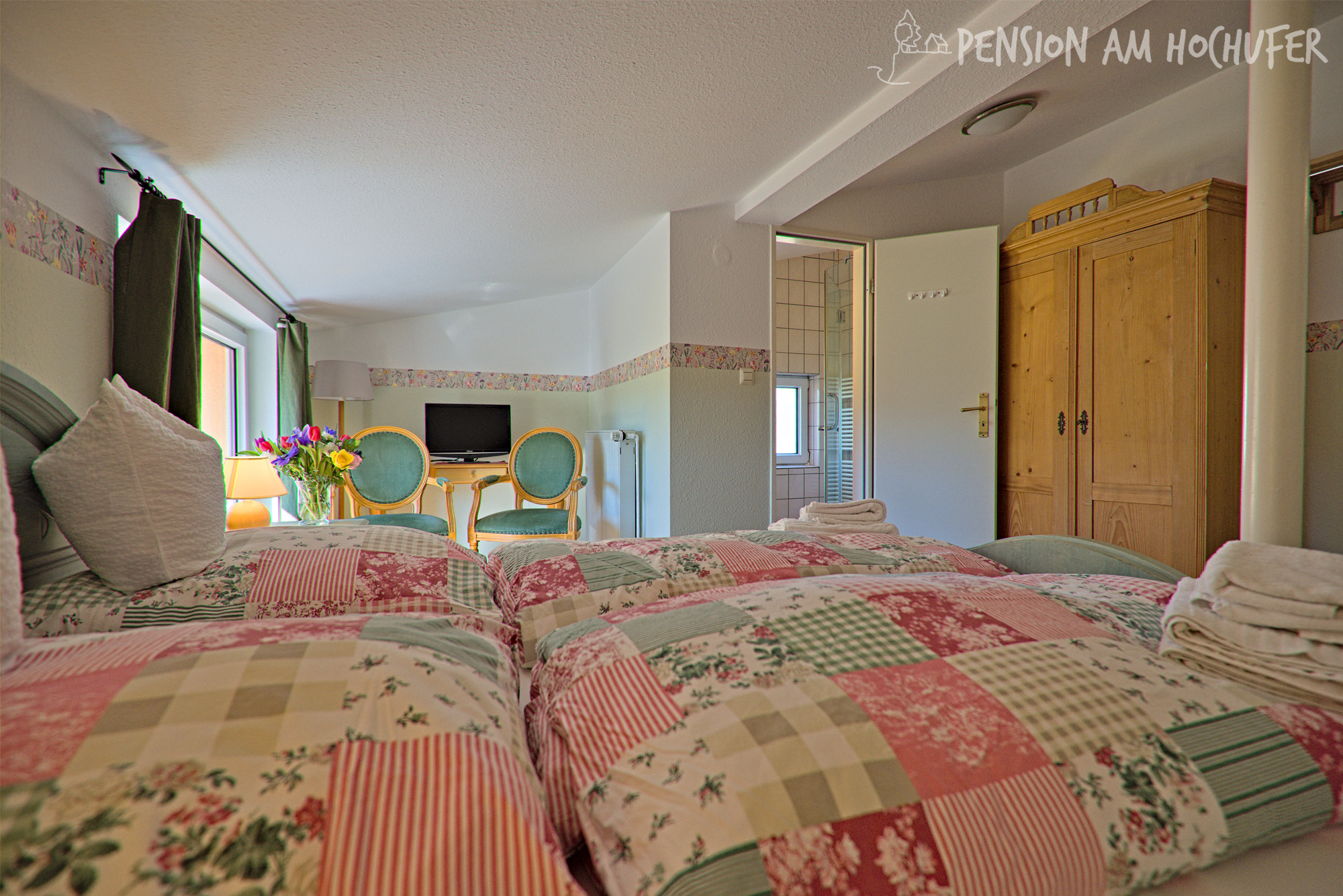 Für Zimmer-mit-Bad-Liebhaber haben wir im Haupthaus einiges vorbereitet. Unsere Zimmer sind individuell und liebevoll eingerichtet und eines ist sicher: Der Blick in den Garten – zu jeder Jahreszeit und an jedem Morgen ein echter Hingucker – mit etwas Glück auf Rehe, Hirsche und andere Besucher aus dem nahegelegenen Nationalpark.